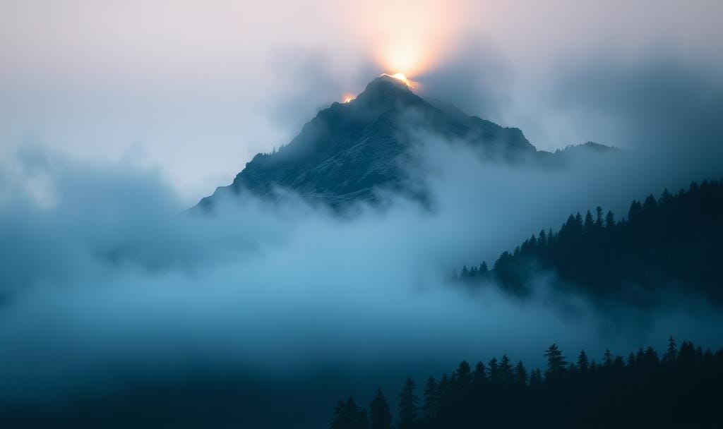 It was steep and treacherous, but through the mist, glimpses of light revealed the direction. At last, I reached the summit. I turned around—the fog had lifted—but no path remained. I turned the other way, and still there was nothing.